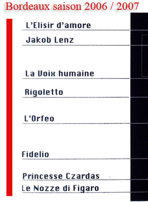 Que penser de cette programmation de la saison 2006-2007 de l’Opéra de Bordeaux....